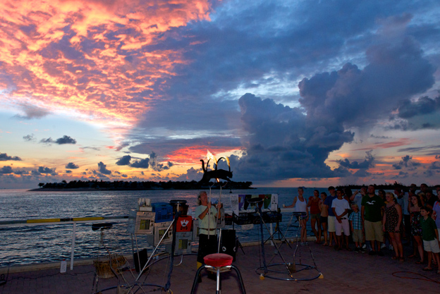 Mallory Square is a waterfront plaza located in Key West’s historic Old Town. It is situated on the Gulf of Mexico just west of the northern end of Duval Street. The plaza features shops, restaurants and an assortment of street performers. Mallory Square hosts the nightly Sunset Celebration, a street fair where visitors and locals gather to watch the sun dip below the horizon. The square is also the setting for the Memorial Sculpture Garden that contains bronze busts of individuals who have made a lasting contribution to the city.